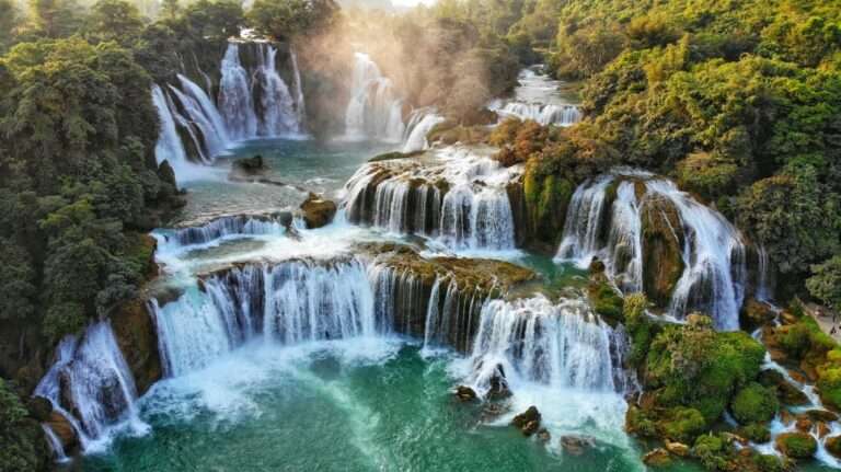 Detian Falls is a large waterfall across China and Vietnam. It is connected with the adjacent Banyo Falls in Vietnam. It is the first transnational waterfall in Asia and the fourth largest in the world. Compared with the famous Huangguoshu Waterfall, Detian Waterfall is more exquisite, the three-step waterfall form is majestic and spectacular, and the 70-meter-high drop makes you feel the full water vapor in the distance. It has also attracted many films and television dramas.