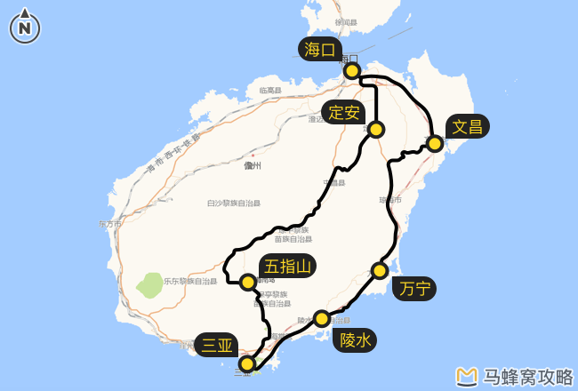 Haikou – Wenchang – Wanning – Sanya – Wuzhishan – Ding ‘an – Haikou