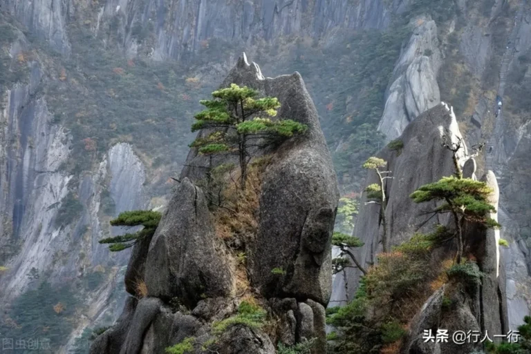 “Huangshan four thousand ren, thirty-two lotus peak. Dan Ya clamp stone pillars, handan golden lotus.” Since ancient times, Mount Huangshan has been praised by many scholars. The welcoming pine with its arms and branches has also been painted and hung in the hall by many people. It is one of the four unique trees of Mount Huangshan. It stands in front of Yuling Building, 1,660 meters above sea level, beside the hiking path north of Wenshu Cave, and is known as the “first pine in China”.
