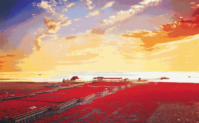 Red Beach is actually the masterpiece of the alkali-tarpaulin plant, which grows in a fixed life cycle every year, born in late spring, growing in summer and autumn, and dying in early winter.