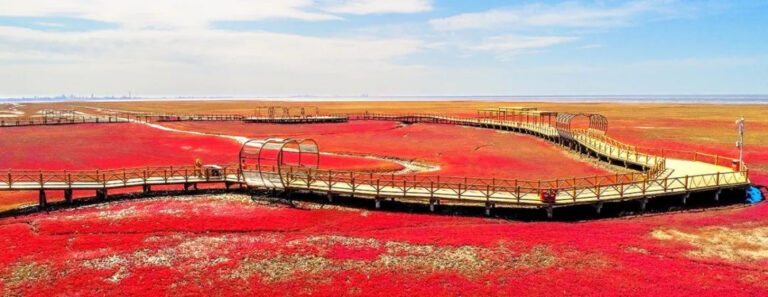 The best time to see Panjin Red Beach is in October of each year, when the alkalium is growing most vigorously.