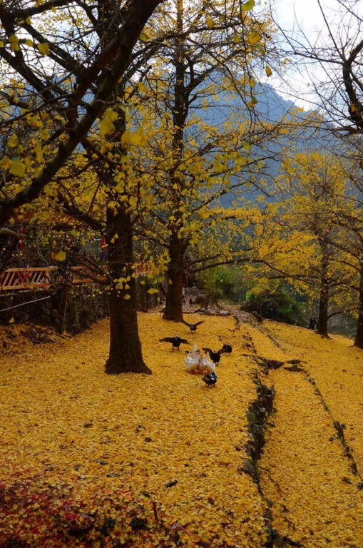 In the ginkgo forest of Haiyang Township, the oldest one has been more than 500 years old, and there are tens of thousands of trees more than 100 years old, among which there is a ginkgo tree named “Ginkgo King” up to more than 30 meters, and it takes six people to hug her.