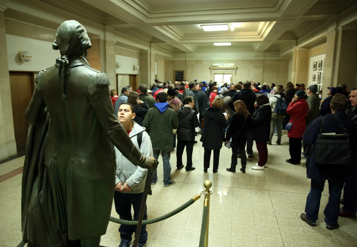 Lightfoot removed the Columbus statue in Grant Park after a bloody clash took place there that summer but punted the fate of that statue and others to a monuments commission, which recommended in 2022 that other historical figures’ statues be scrutinized as well. The City Hall’s George Washington statue is not in the report.