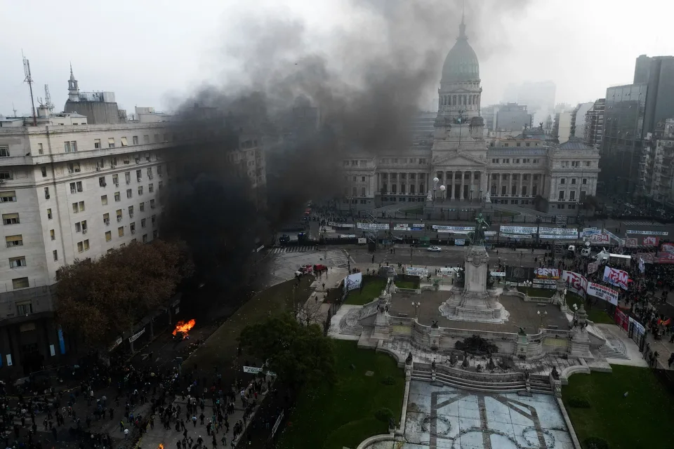 The protests that took place earlier in the day highlighted the political resistance to Milei’s proposals. Demonstrators threw rocks, broken glass, and Molotov cocktails at riot police as they attempted to clear a nearby plaza using water cannons and tear gas. Additionally, a car was flipped and set on fire by the protesters.