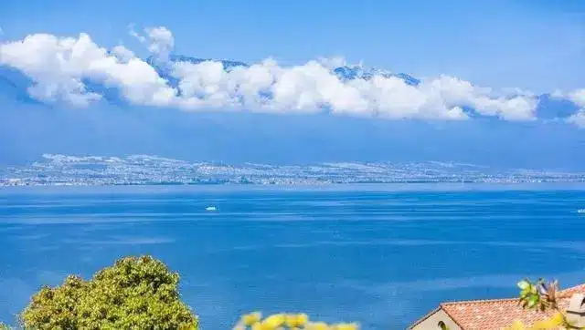 Cangshan Mountain is covered with white snow, and white clouds are floating on Erhai Lake. Erhai Lake is said to be a sea, but it is not a sea. Locals call Erhai Lake “sea”, and Erhai Lake is Dali in Yunnan province.