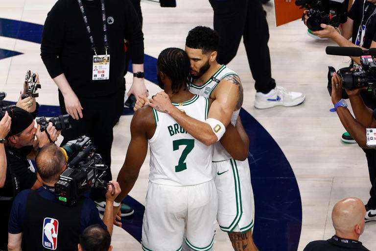 With just one more win, the Celtics will achieve their decade-long goal of reclaiming basketball glory. Brown and Tatum played crucial roles in their 106-99 triumph at the American Airlines Center on Wednesday night. In the final 3 minutes and 8 seconds, after a discouraging scoring drought, they combined for 8 of Boston’s 13 points, sealing the deal and ensuring victory.